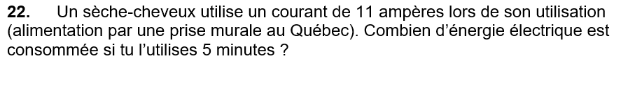 Secondaire 4 • 7mBonsoir, je n'arrive pas à faire ce numéro. J'arrive seulement à trouver le nombre de coulombs, mais je ne sais pas en quoi ça va m'aider à trouver l'énergie électrique.