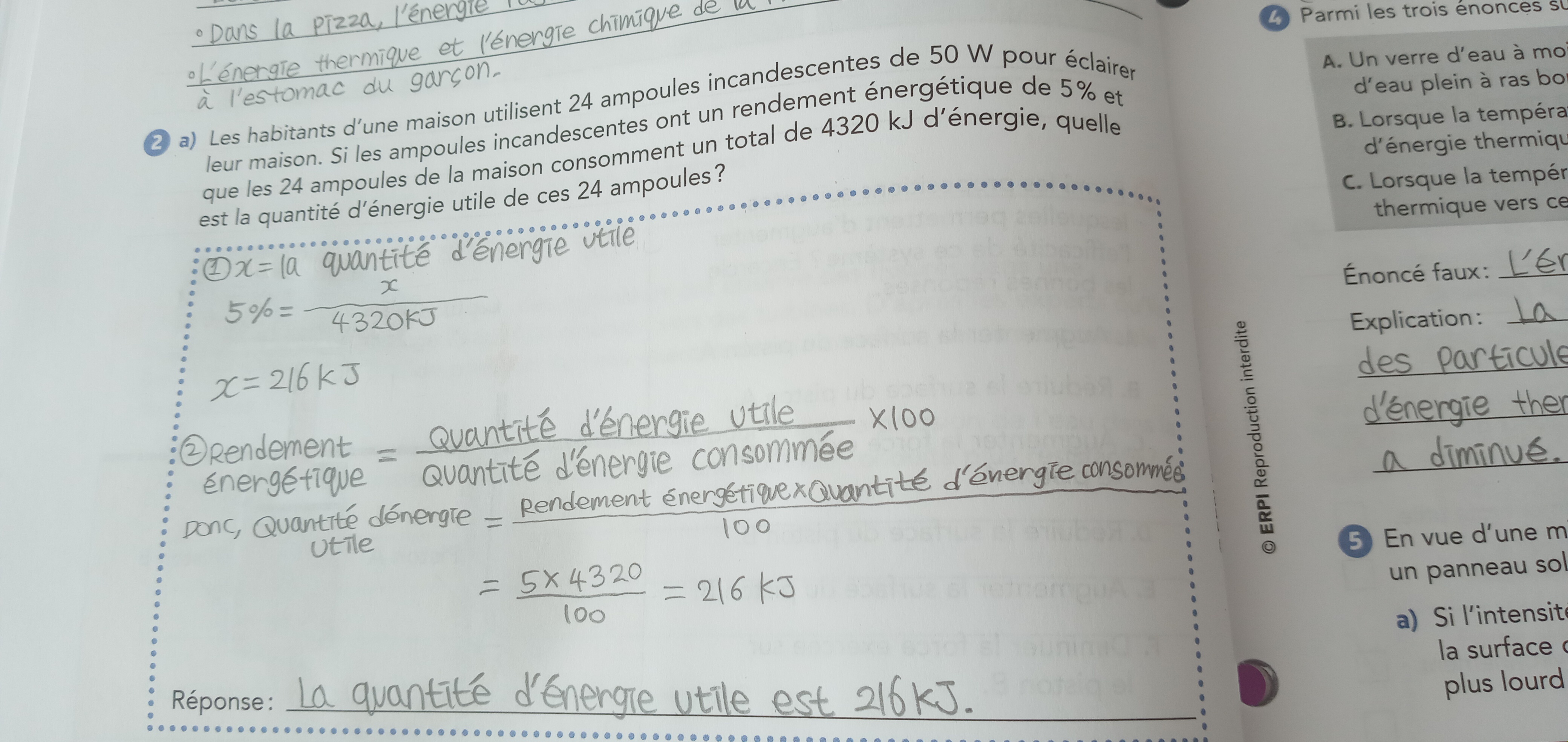 Secondaire 5 • 4abonjour , j’aimerais savoir si j’ai réussi à bien faire mon exercice svp ?