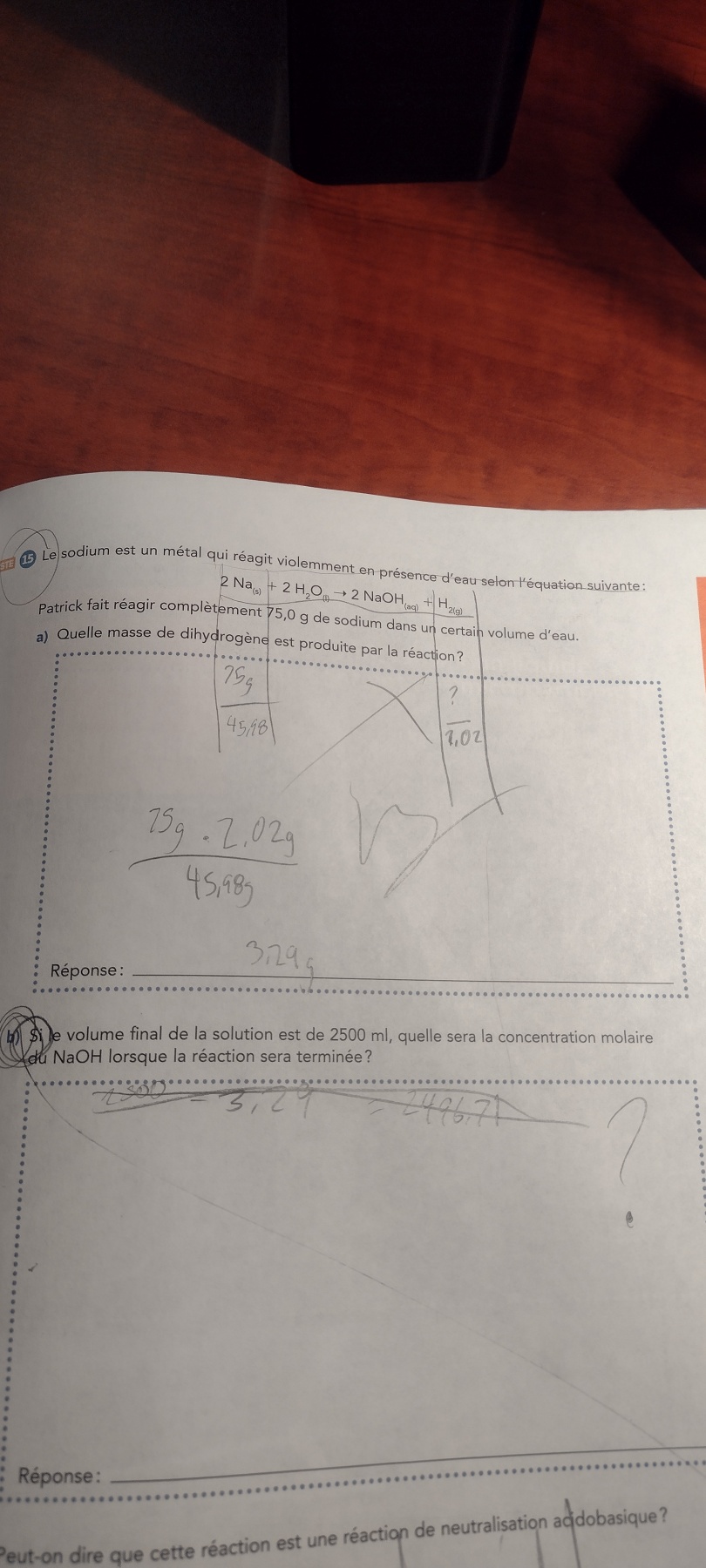 Secondaire 3 • 8mBonjour, je n'ai pas compris ce problème en science. On doit utiliser la formule de concentration ou de la dilution. Merci en avance. J'aimerais avoir une réponse plus détaillé puisque j'ai un examen decu demain. Merci beaucoup.