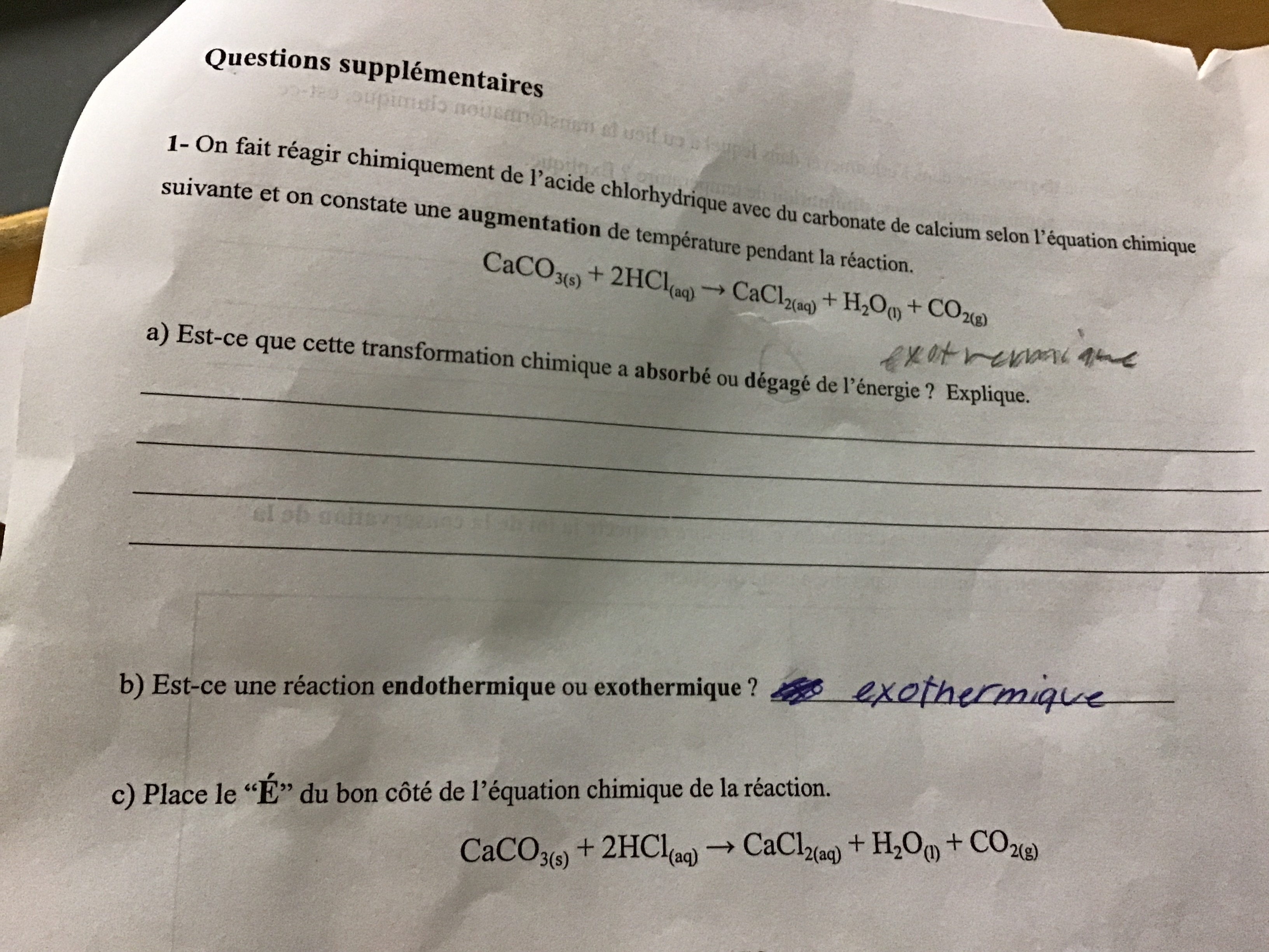 Secondaire 3 • 4aBonjour, au numéro 1 a) je ne sais pas comment justifier le fait que cette transformation chimique a dégagé de l’énergie. Comme fait-on pour formuler une réponse dans ce genre de question? Merci