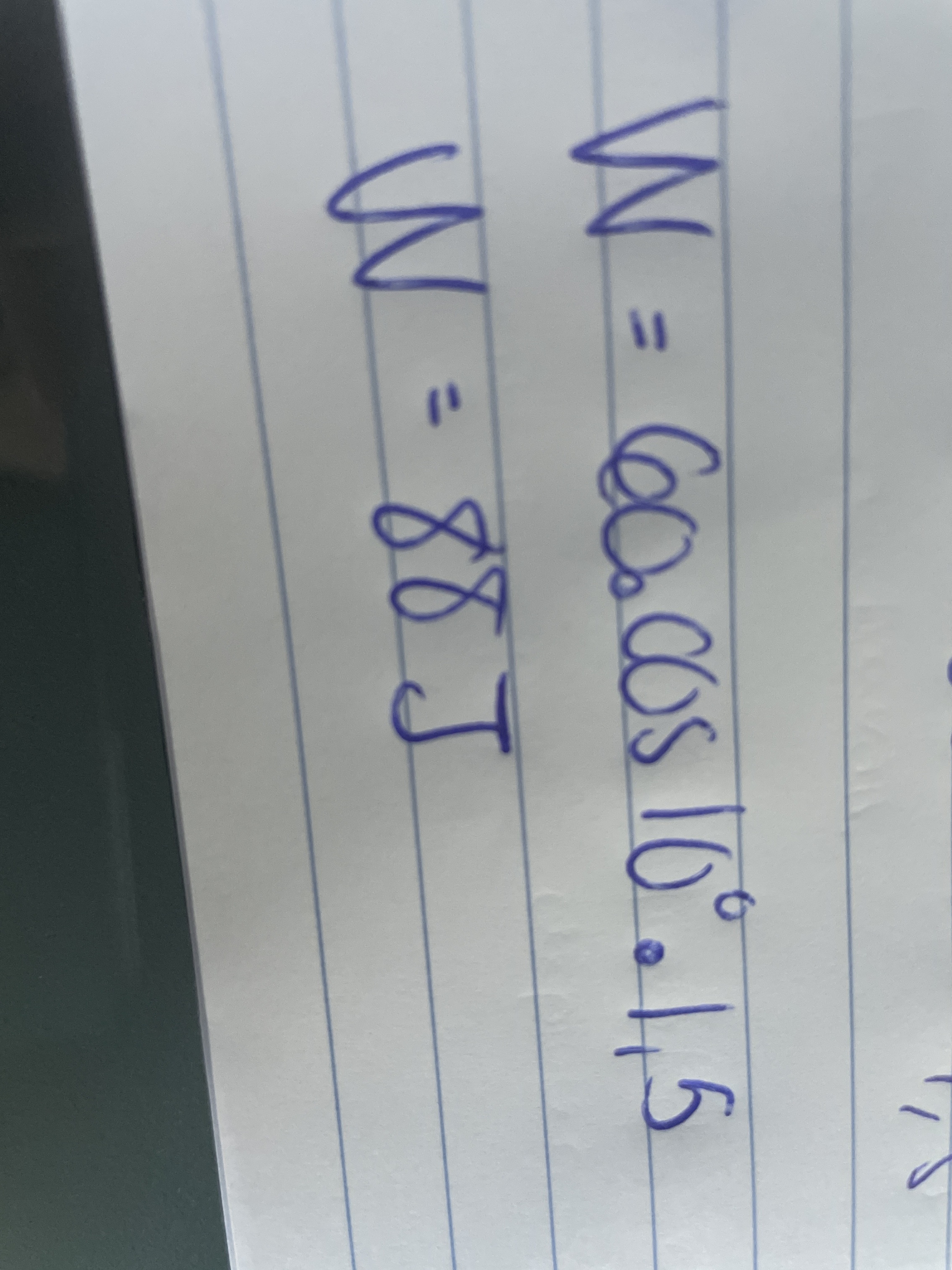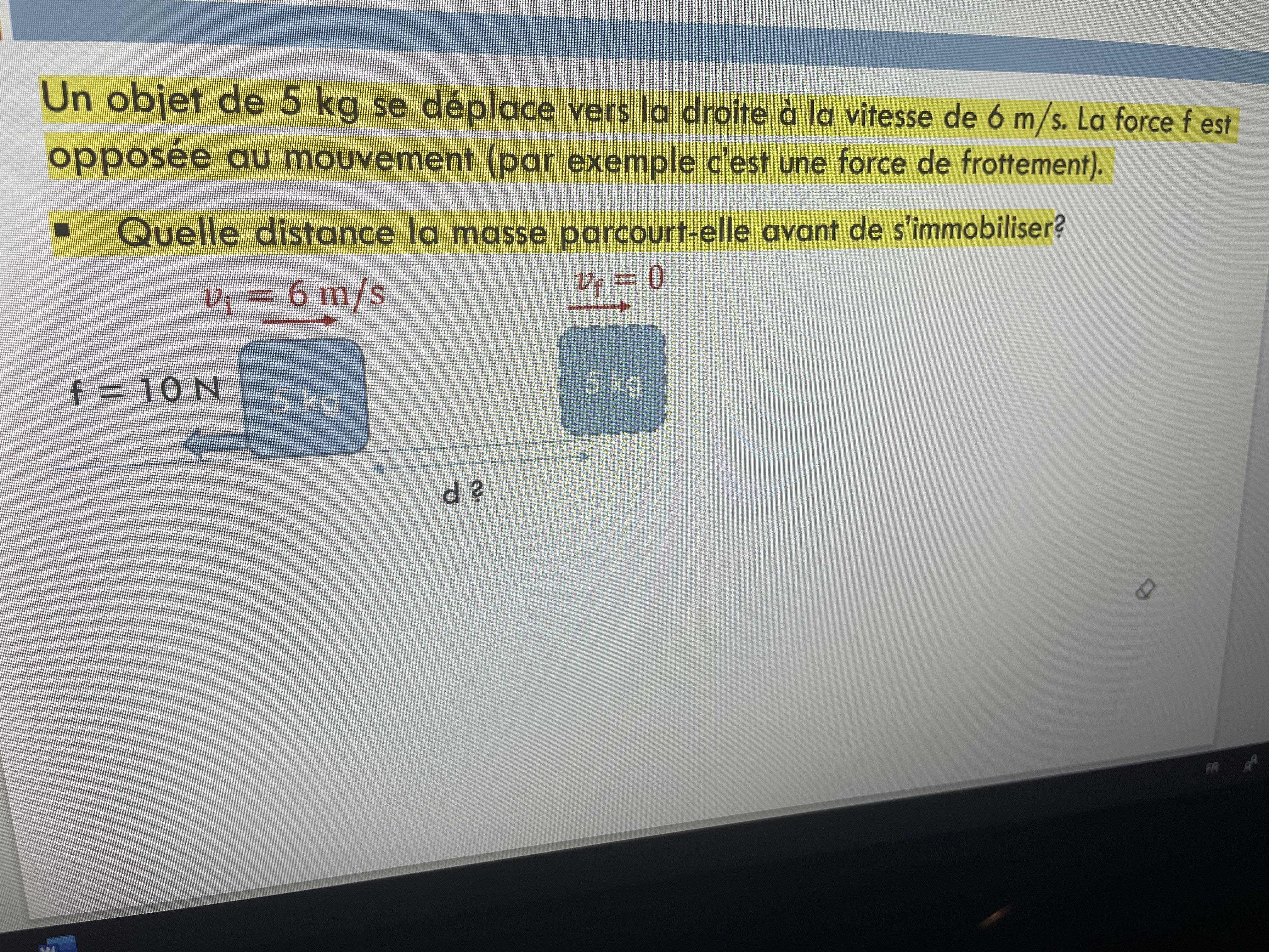 Secondaire 5 • 4aBonjour , je pense que pour cet exercice je peux utiliser la formule w= fd non? Puisque la force et le déplacement sont parallèle ?
