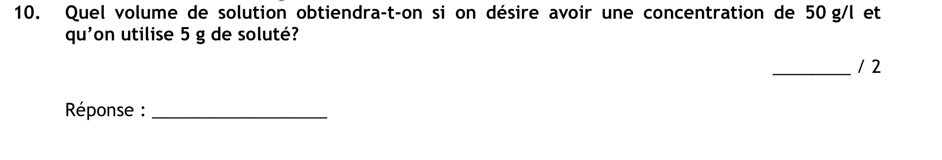 Secondaire 3 • 4aAllo , j’ai un devoir en sciences sur le calcul de la concentration et je ne sais pas comment faire pour calculer la masse d’un soluté en solution