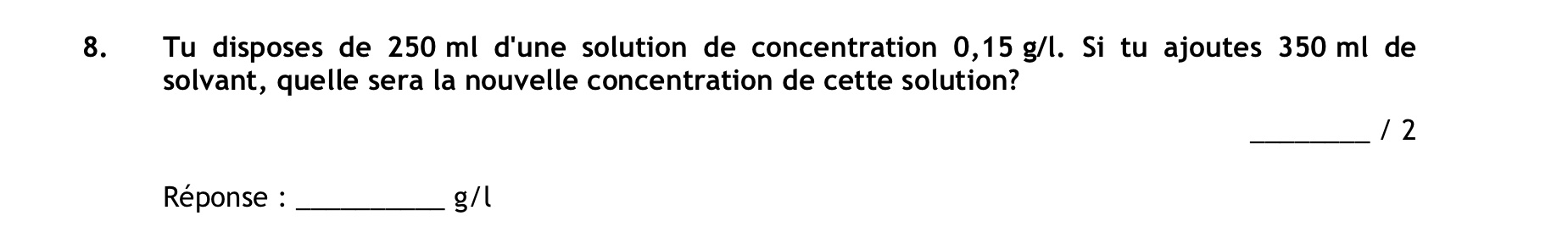 Secondaire 3 • 4aCeci sont les images de concentrations que je ne comprend pasEt ceci est l’image de dilutionMerci de m’aider !