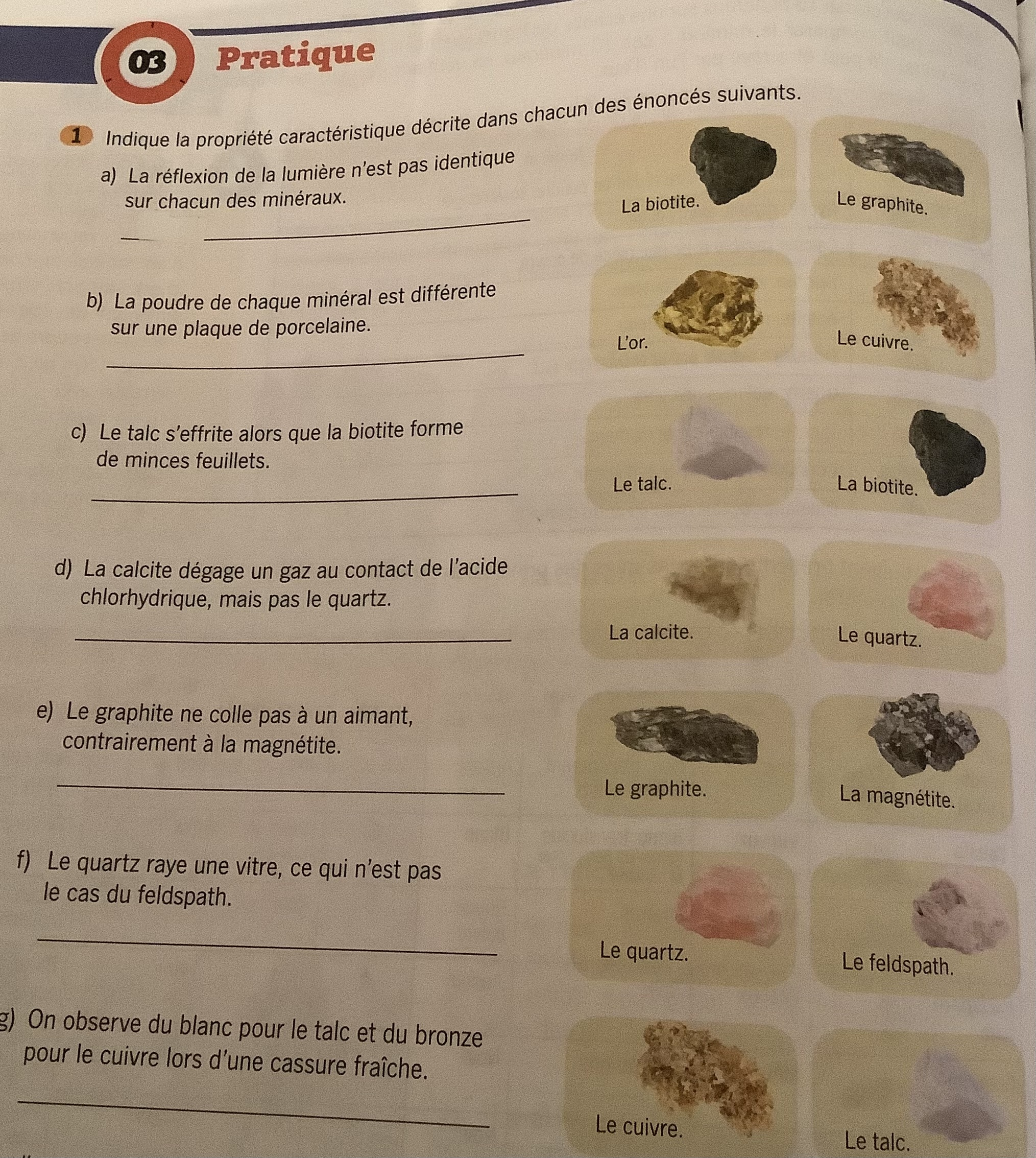 Secondaire 2 • 4aJ'ai un laboratoire demain sur l'identification des minéraux et je ne comprend pas très bien la matière aidez moi.