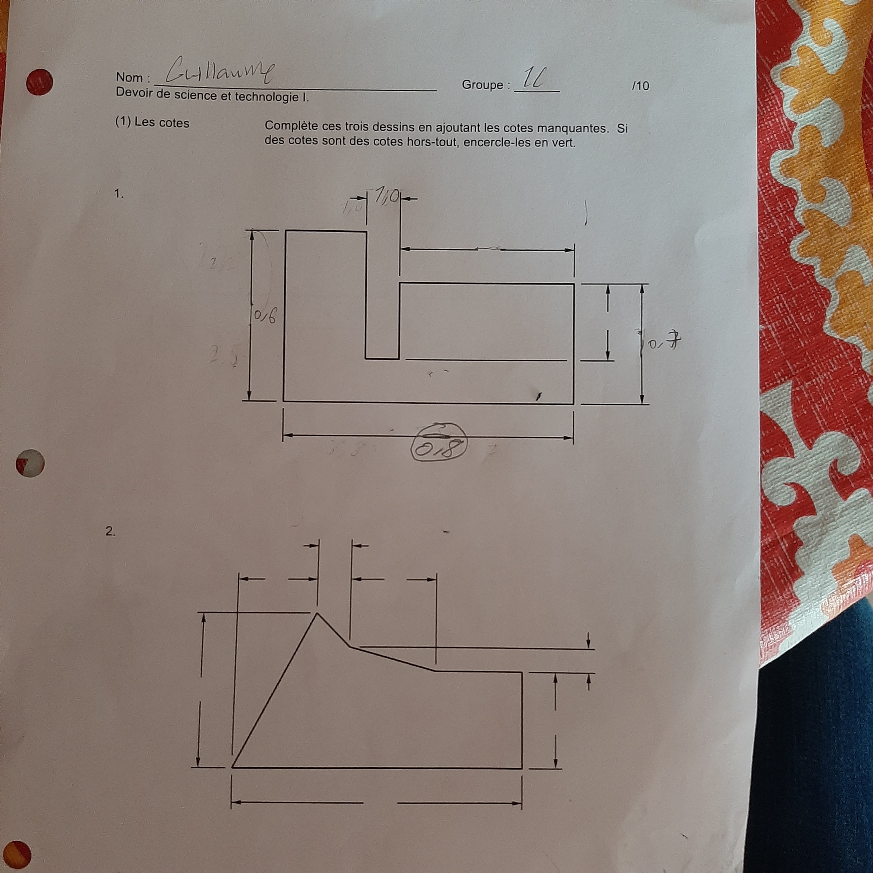 J'ai 3 schémas devant moi et la question est complète ces 3.dessins en ajoutant les cotes manquantes . Si des cotes sont des.cotes hors tout...il faut les encercler en vert. Qu'est ce que c'est une cote hors tout ??