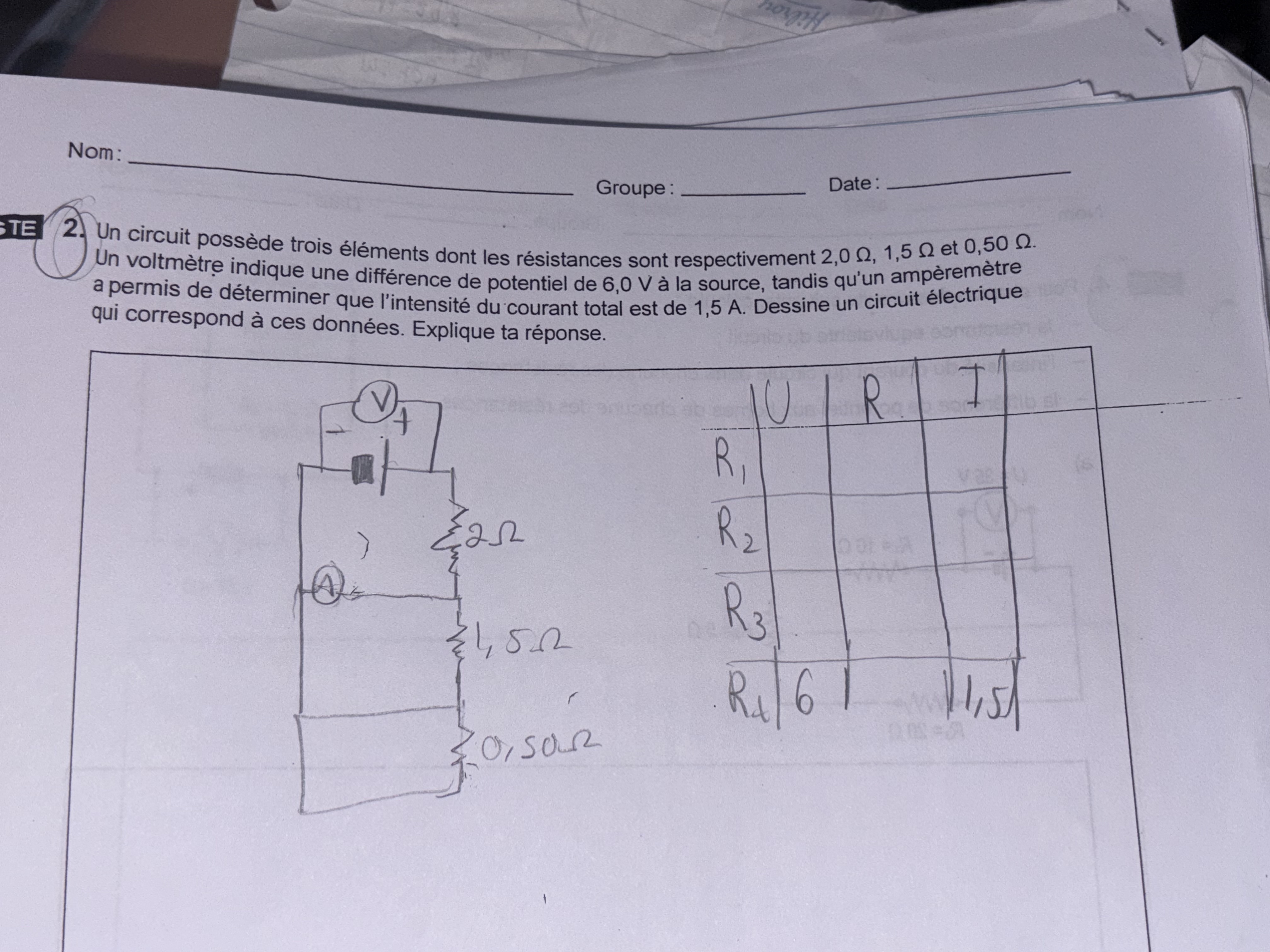Secondaire 4 • 24jchu pas sûr si j’ai bien dessiner le circuit. Pouvez vous m’aidez svp?