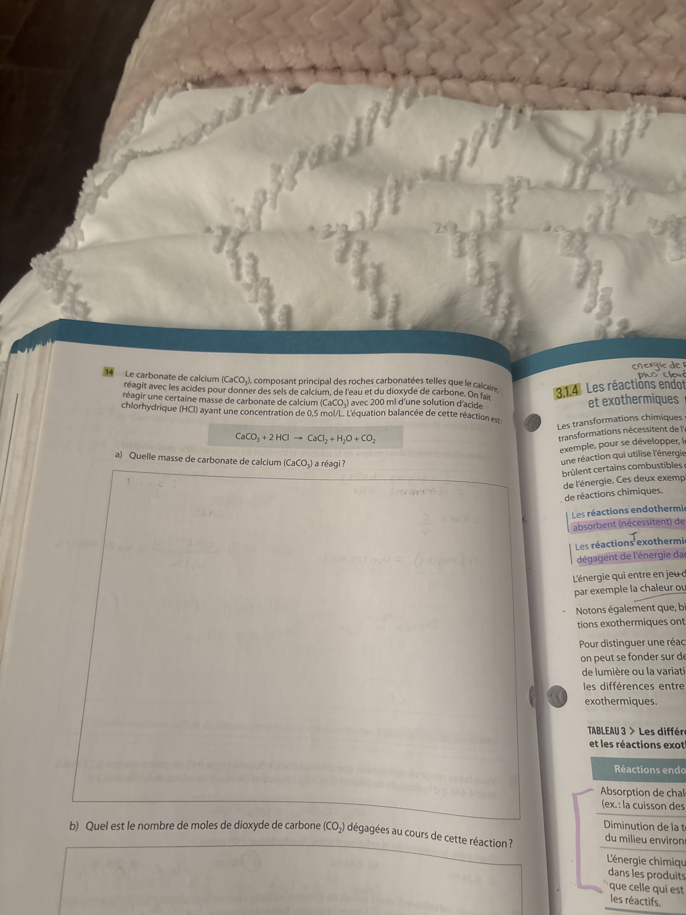 J'ai une question sur les réactions endo et exo thermiques. Plus spécifiquement quand les calculs stoechiométriques entrent dedans.