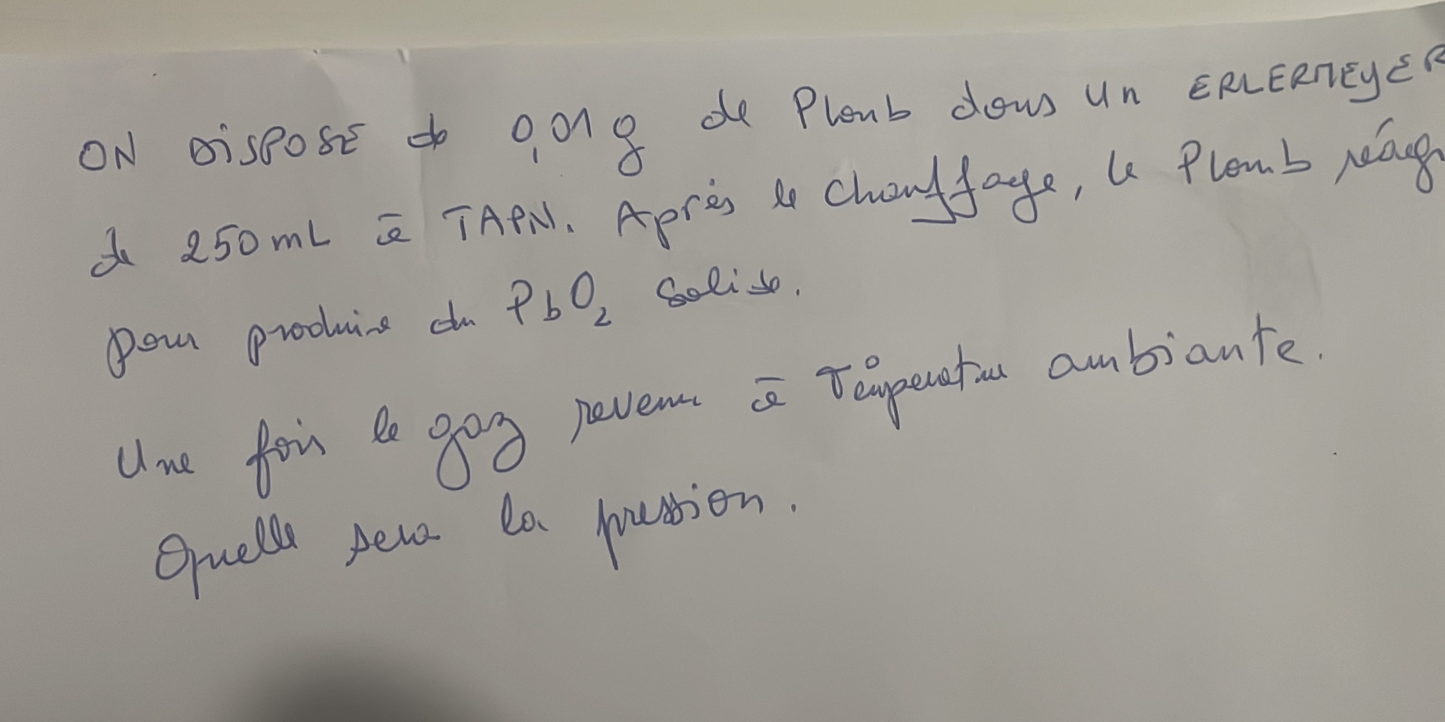 Secondaire 5 • 1aBonjour, pouvez vous me donner le corrigé svp de ce problème de chimie sec5