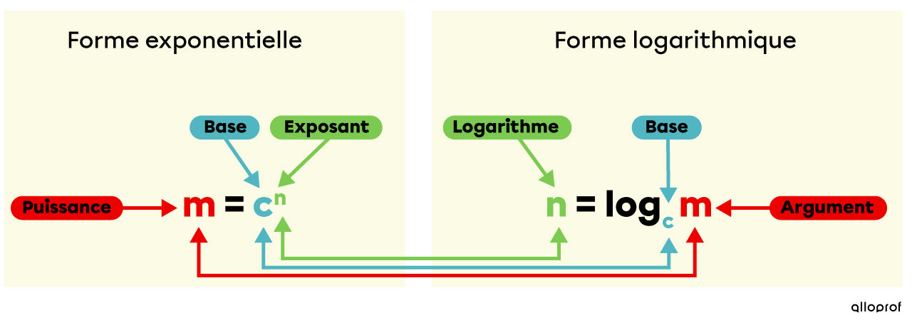 Pour résoudre une équation logarithmique, tu dois pouvoir utiliser les lois des logarithmes, et tu dois être en mesure de transformer une forme logarithmique en forme exponentielle et vice-versa :