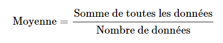 Tout d'abord, rappelons-nous qu'une moyenne se trouve en additionnant toutes les données, puis en divisant cette somme par le nombre de données.