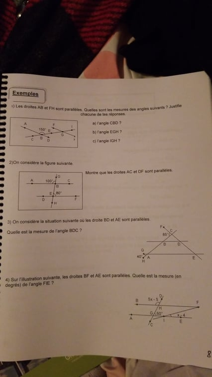 Par exemple, pour le numéro 1 b), l'angle EGH est équivalent à l'angle