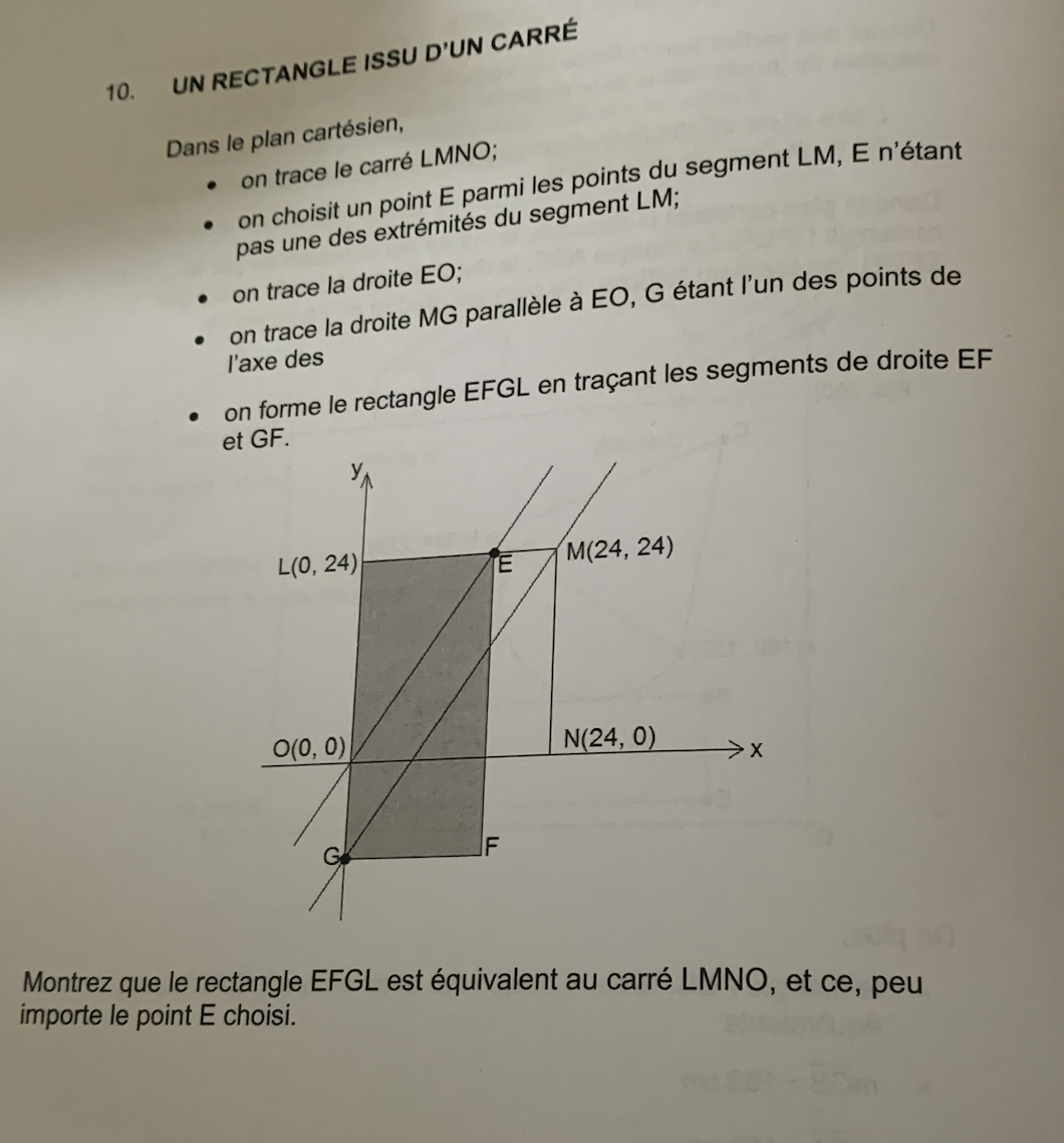 L'équation en question constitue le lien entre l'aire de la partie grise et l'aire du carré LMNO. Ainsi, il s'agit de l'opération suivante :