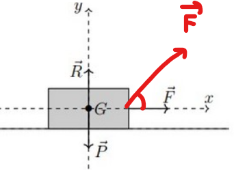 Il se peut que la personne ne tire pas l'objet de façon parfaitement horizontale, donc qu'il y ait un angle entre l'horizontale et la force, comme ceci :