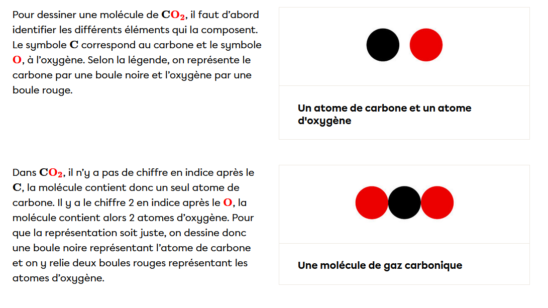 Comme cela, on peut bien voir la composition des molécules (atomes de couleurs différentes).