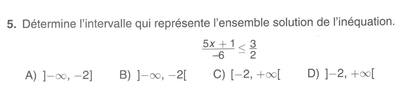 Ensuite, tu peux analyser ta réponse selon le symbole. Je te conseille de mettre la solution sur une droite numérique. Ce sera plus simple de le mettre en intervalle.