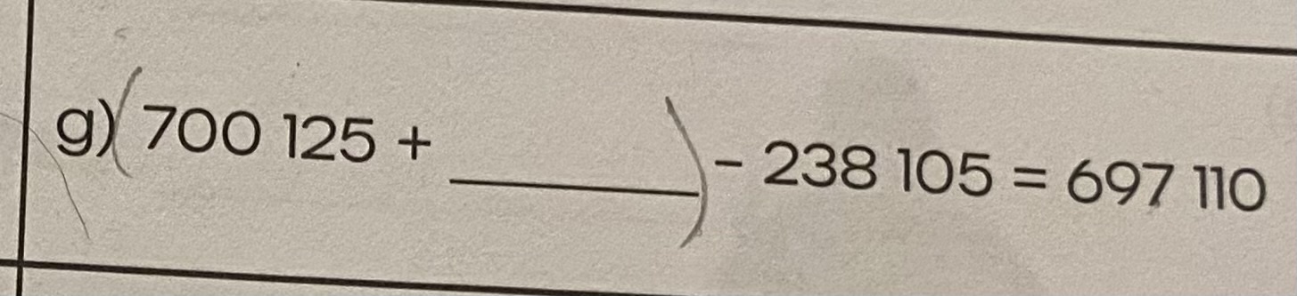 En fait, tu a un certain nombre obtenu grâce à l'équation 700 125 + ?. Puis, en enlevant de ce nombre 238 105 on sait qu'on obtient 697 110.