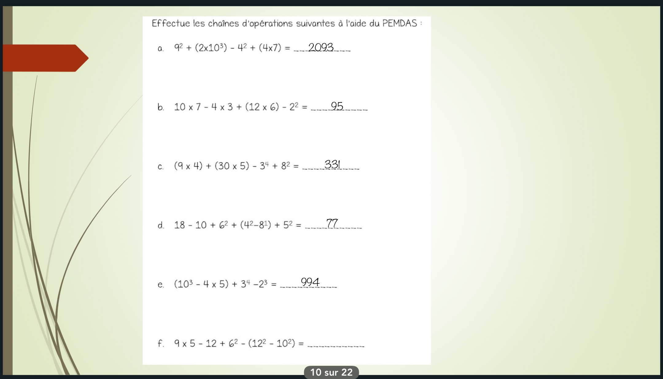 Bonjour, le résultat n'est pas censé être négatif. Il faut utiliser la règle PEMDAS, l'ordre à suivre dans les calculs litterals.