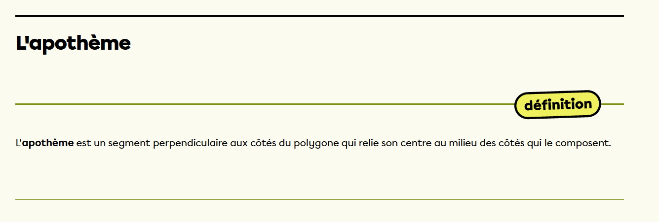 Ici, c'est un octogone, mais l'apothème se dessine de la même façon.