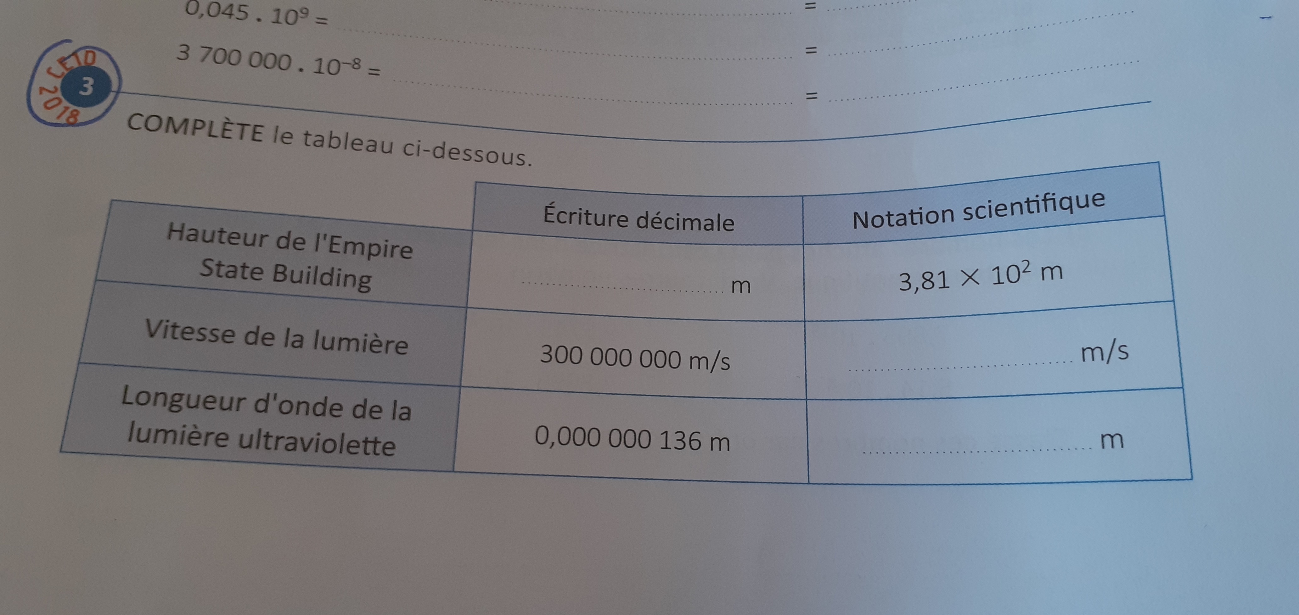Bonjour , je vois les notations scientifiques en classe , que l'on doit transformer en écriture décimale et inversement. Mais j'y arrive pas :-( (ps :le X c'est un fois , que lon ecrit avec un point à l'école.