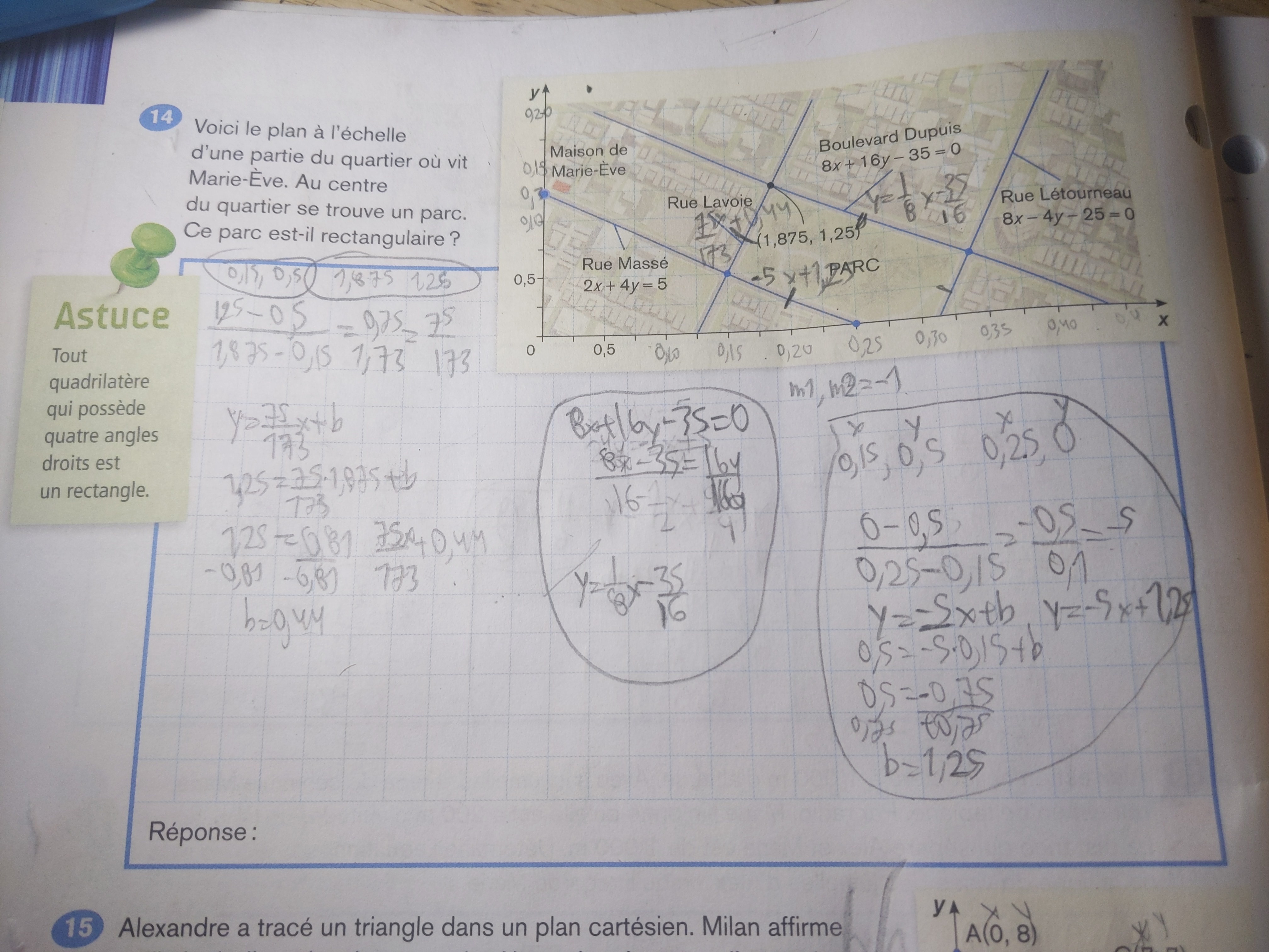 Ici, on te demande si le parc est rectangle. Tu peux en effet comparer tes droites pour voir si elles sont perpendiculaires.