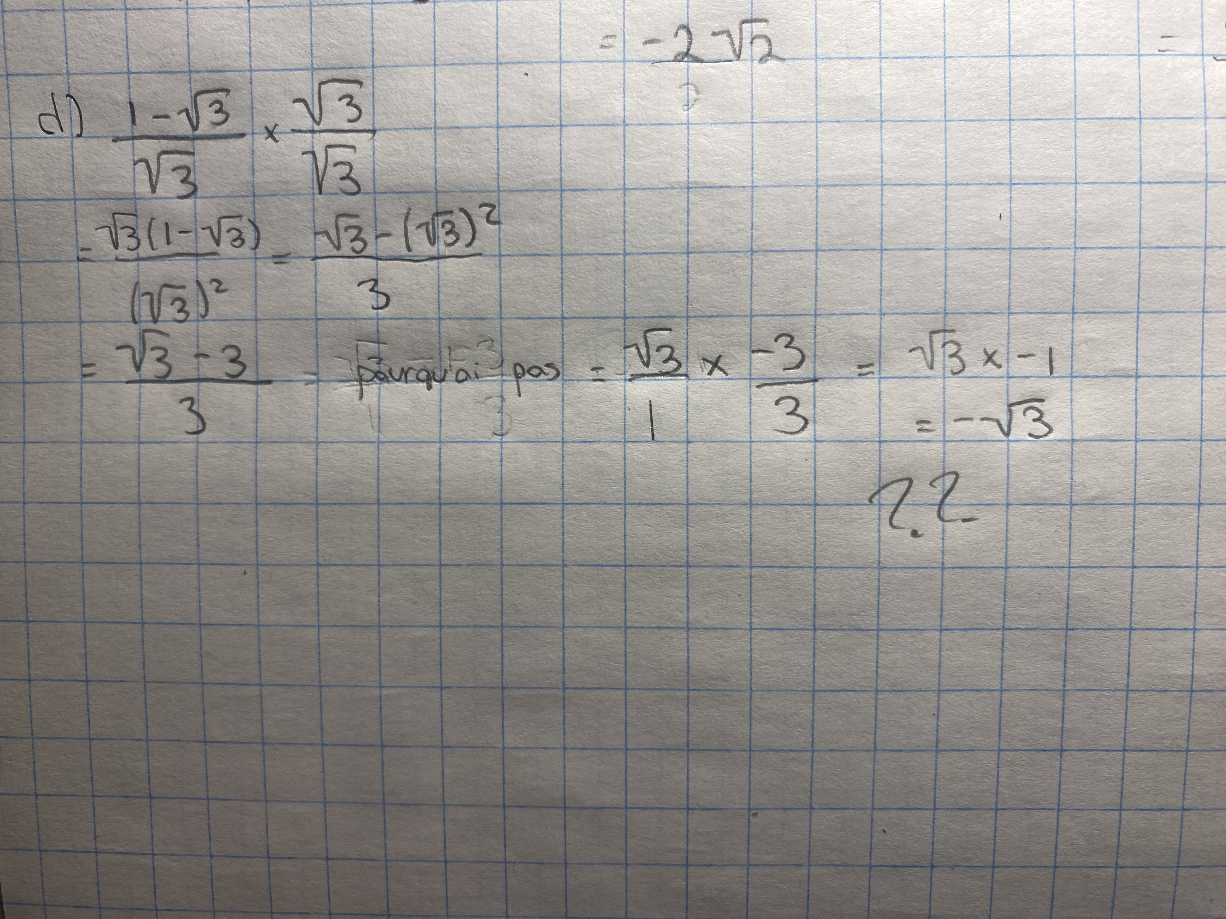 $$ \frac{\sqrt{3}-3}{3}=\frac{\sqrt{3}}{3}-\frac{3}{3} $$