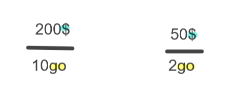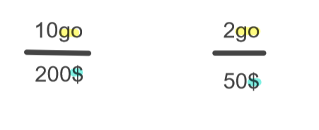 $$\frac{10\text{go}}{200$} > \frac{2\text{go}}{50$};$$