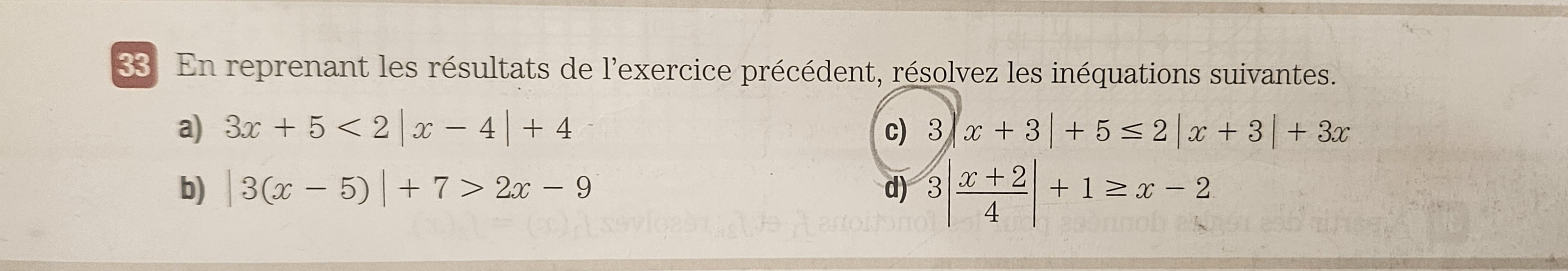 Tu peux commencer par placer les deux valeurs absolues du même côté de l'inégalité :