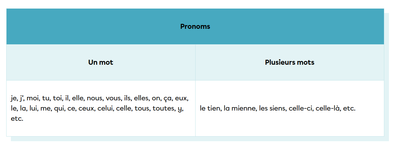 Un pronom peut ĂȘtre formĂ© dâun seul mot ou de plusieurs mots.