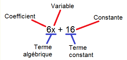 Par exemple, ceci est une expression algébrique composée de deux termes :