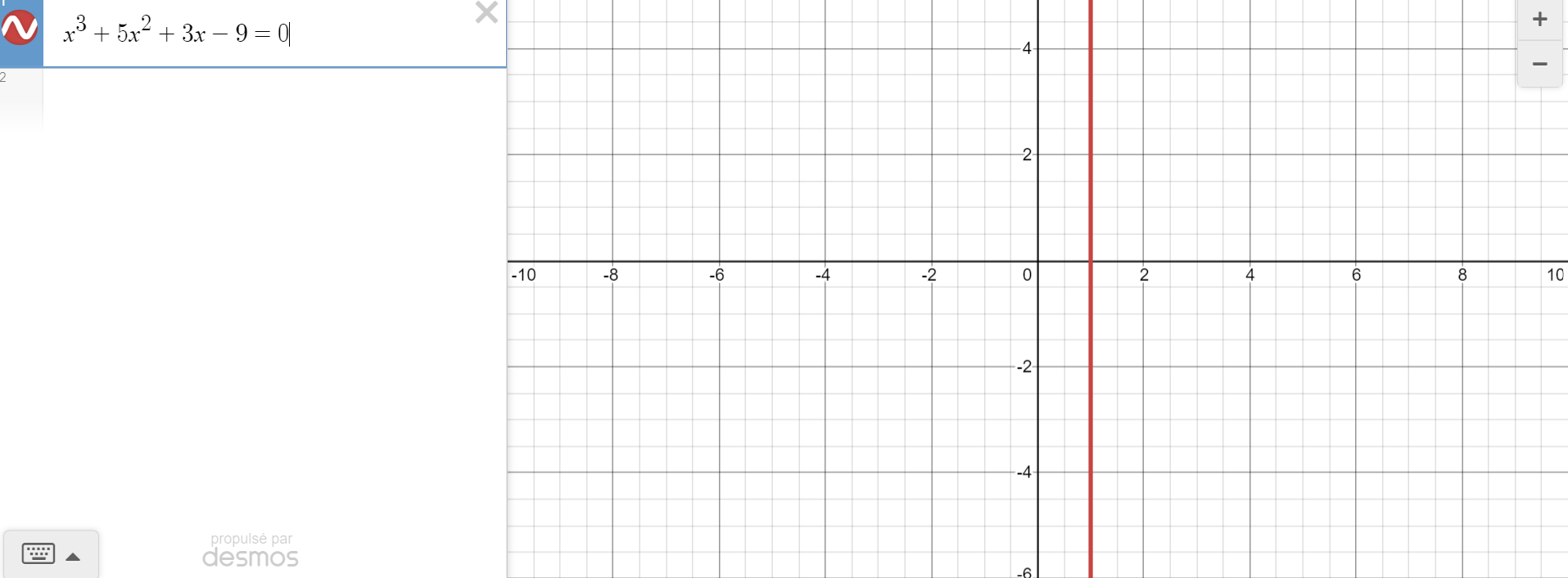 Voici la représentation graphique de x³ + 5x² + 3x - 9 = 0