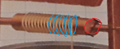 Une fois cela fait, comme tu as la circonférence (en rouge) , tu pourras trouver la longueur de la corde sur la tige comme illustré sur la photo ( attention, la longueur de la corde sur la tige = 20x la circonférence, car elle est enroulé 20 fois autour de la tige !)