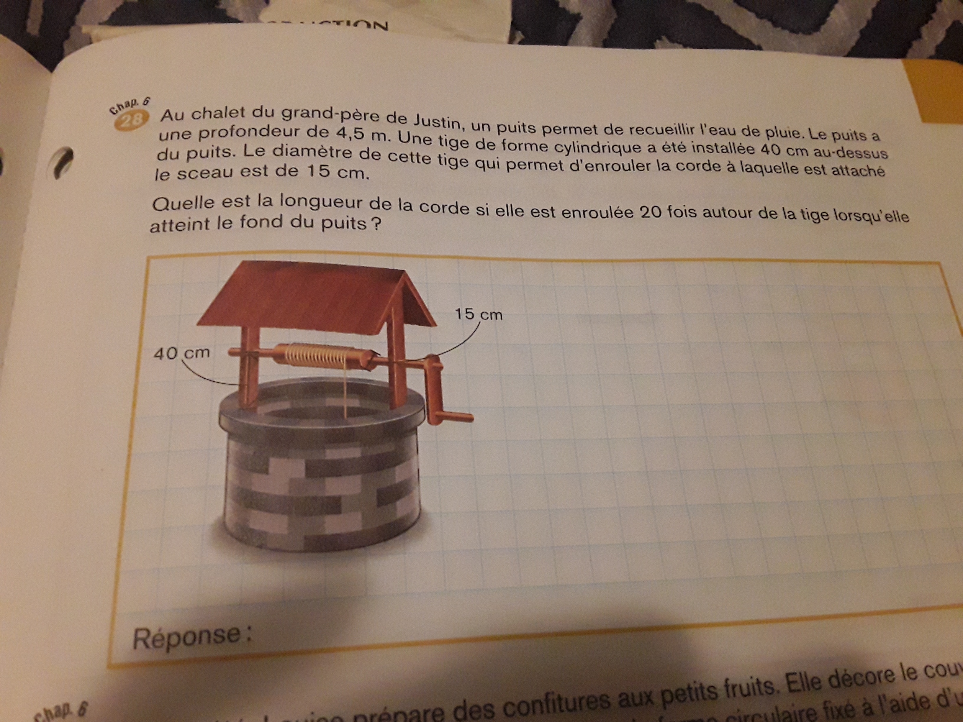Maintenant, il ne faut simplement par oublier d'ajouter le 40cm ainsi que le 4,5mètres (car la corde tombe jusqu'en bas du puit pour pouvoir ramasser le pot d'eau)