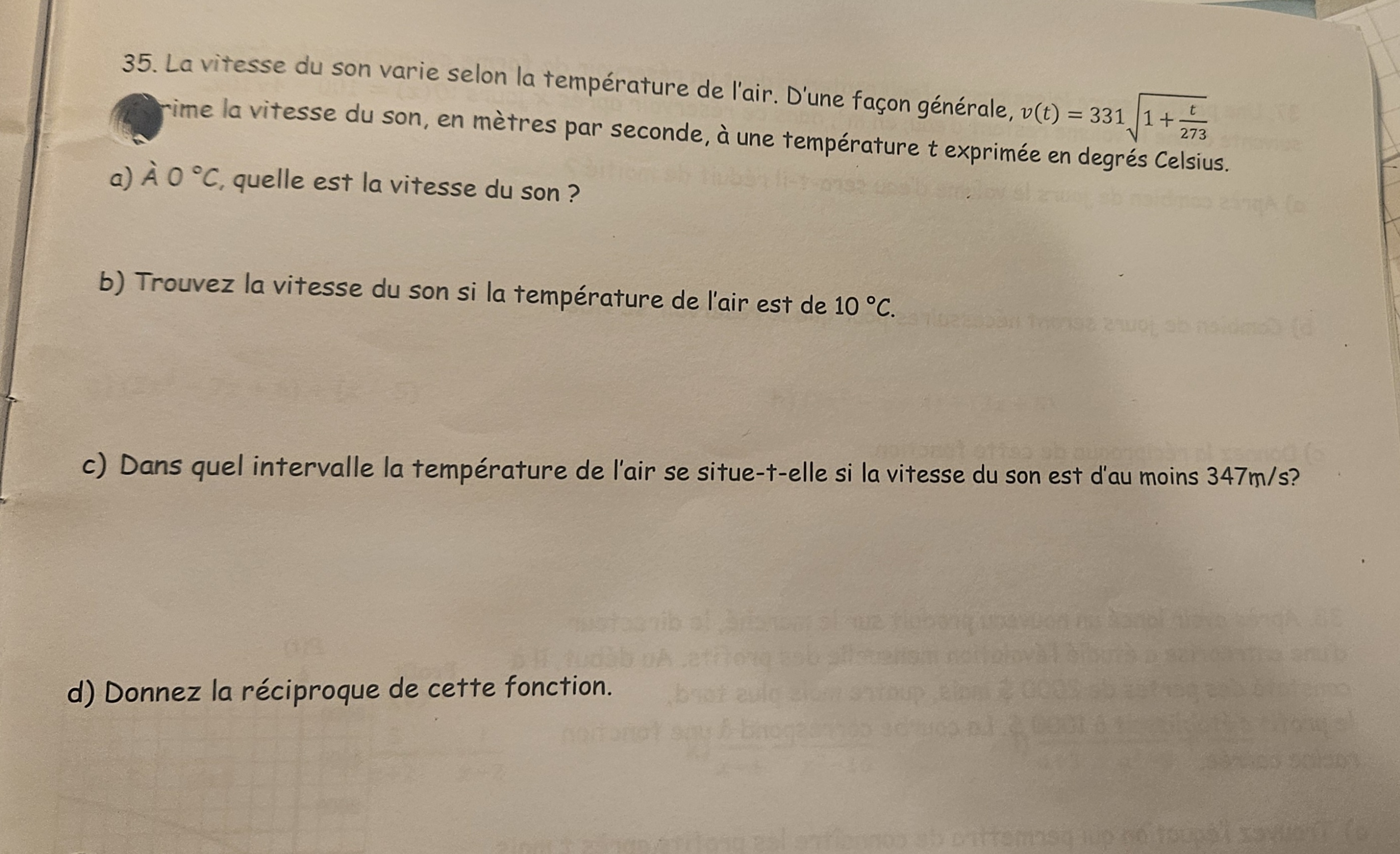 puisque v(t) = 331 √(1 + t/273)