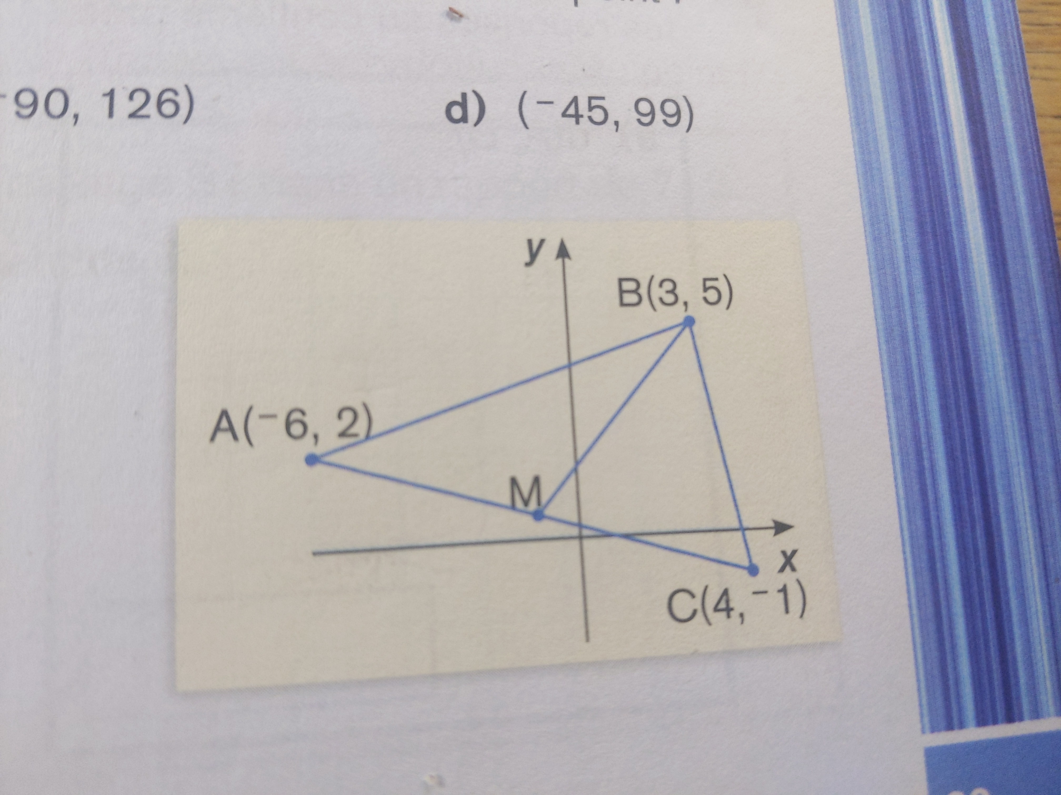Dans un triangle, une médiane est un segment qui relie un sommet au milieu du côté qui lui est opposé. Ainsi, le point M est le point milieu du segment AC. Donc, pour résoudre cet exercice, tu dois trouver les coordonnées du point milieu M :