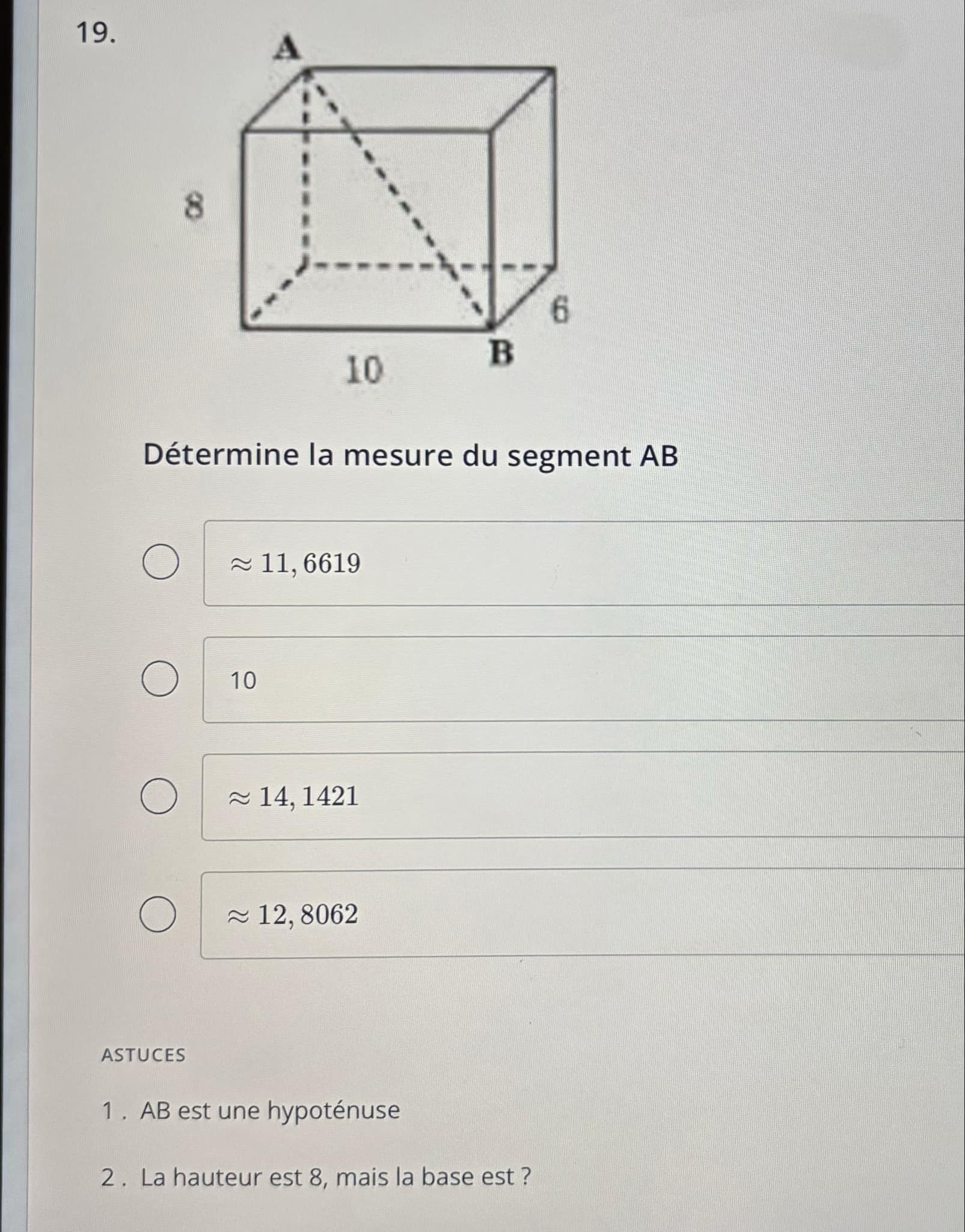Tu dois utiliser le théorème de Pythagore dans le triangle rectangle suivant :