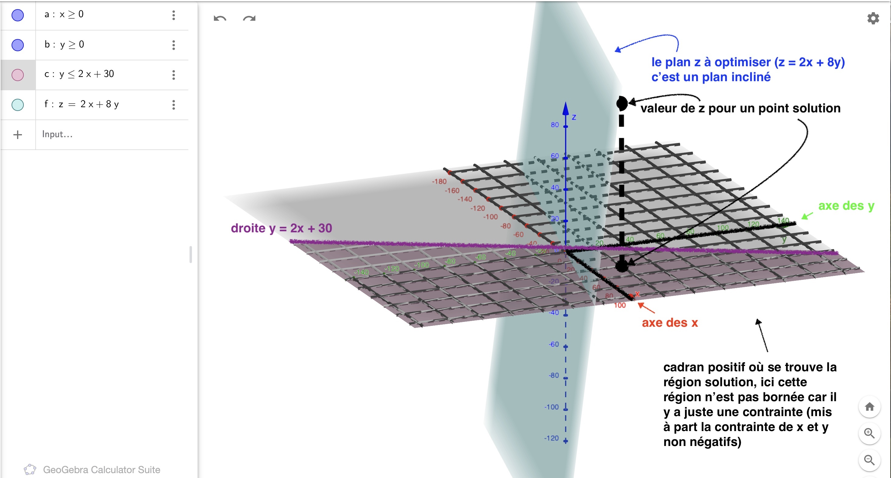 Comment fait-on pour tracer la droite baladeuse d'un problème d'optimisation, lorsque la règle de l'objectif est z= 2x+8y, qui donne donc une pente négative, mais qu'on a juste le quadrant positif à notre disposition pour la tracer ?
