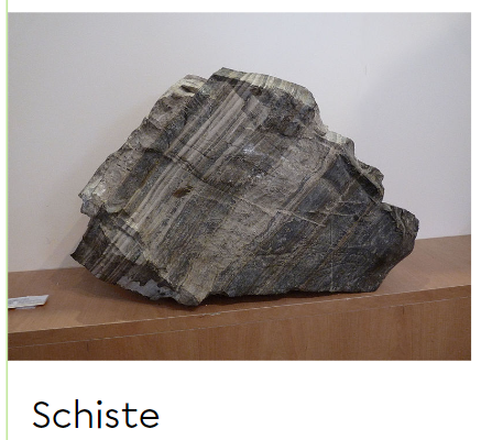 Les roches métamorphiques ont des traces de lignes si tu as compris ce que je dis, à cause des pressions et à températurs hautes.