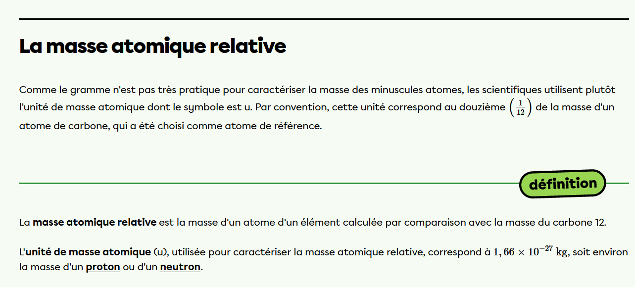 La masse atomique s'agit de la masse d'une atome qui peut varier à cause qu'elle a aussi des isotopes, mais seulement d'un peu, pas énormément.