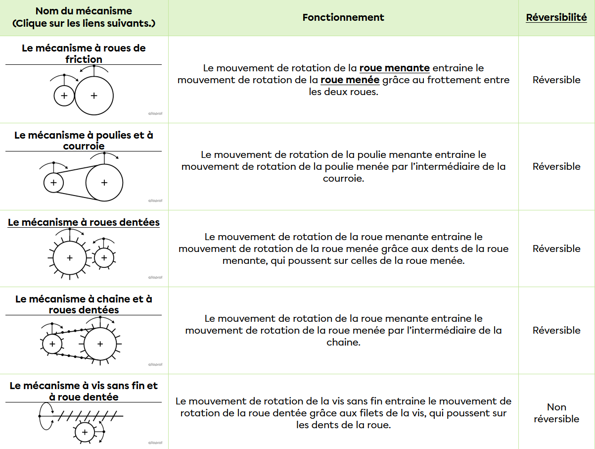 Les mécanismes de transmission du mouvement sont des mécanismes qui conservent le type de mouvement entre l’organe menant et l’organe mené.