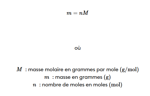 En sachant cela, il est possible de retrouver la masse grâce à la masse molaire et au nombre de moles.