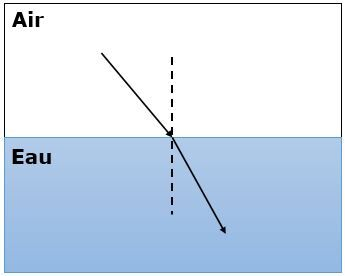 L'eau a un indice de réfraction plus grand que l'air, ce qui signifie qu'elle dévie plus la lumière.