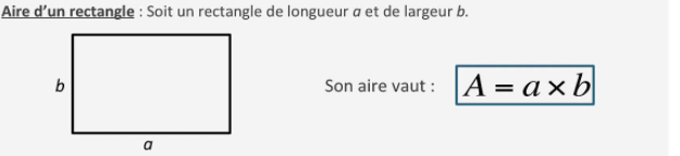 On te fournit les mesures du terrain rectangulaire, tu peux donc appliquer la formule d'aire d'un rectangle pour trouver la superficie du territoire.