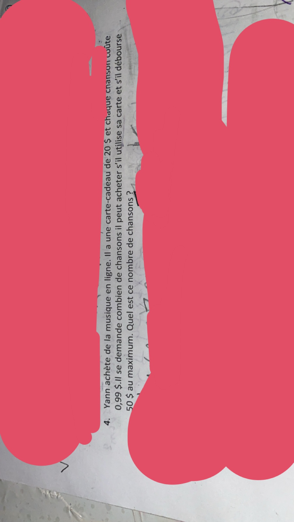 Yann utilise sa carte de 20$ et en plus il débourse un maximum de 50$