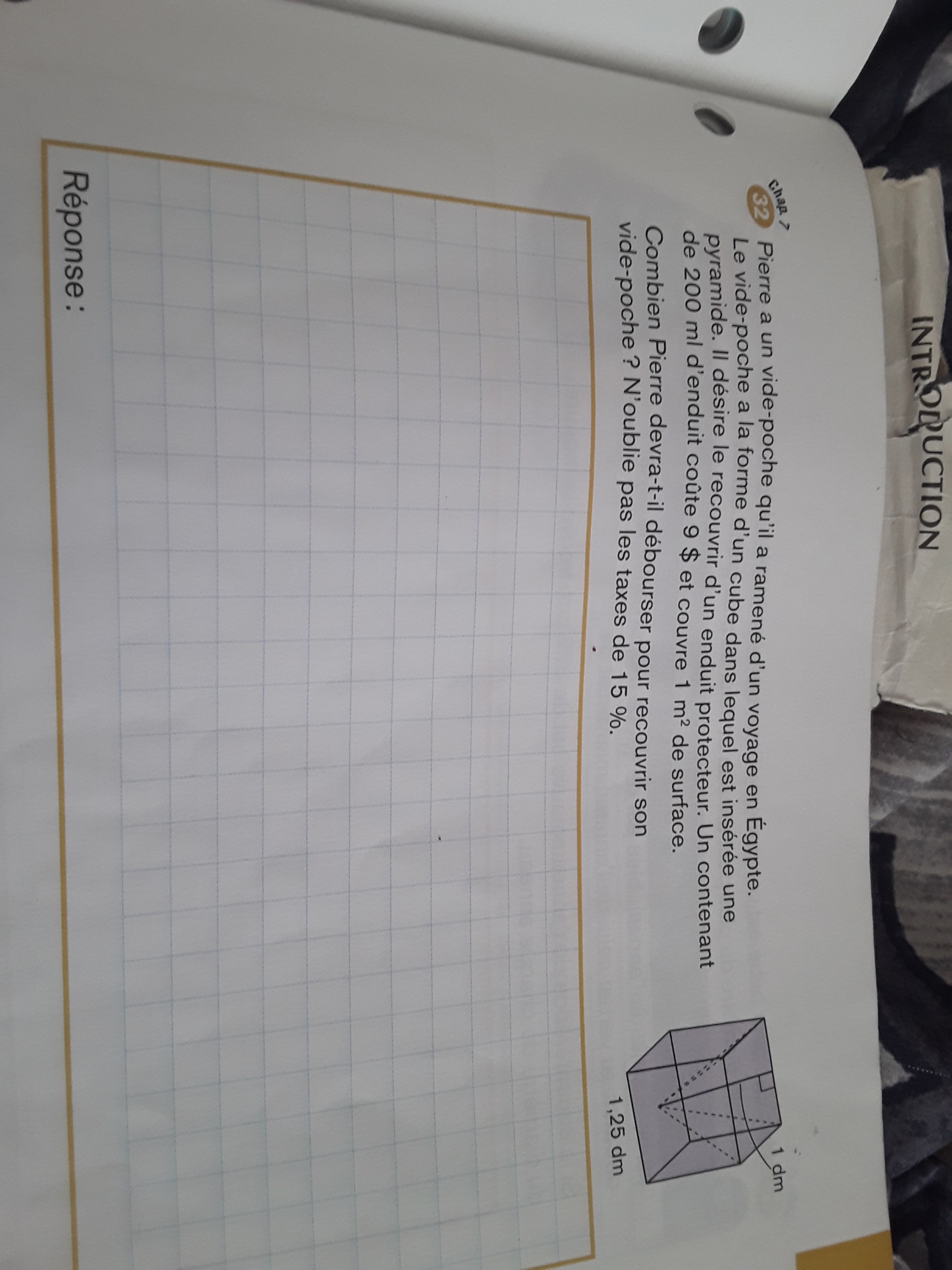 Dans ce numéro, tu dois trouver l'aire totale du solide, trouver le coût de la quantité de peinture dont il aura besoin, et ajouter les taxes de 15% à ce montant.
