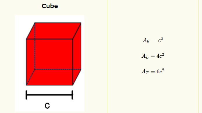 Pour ce faire, tu auras besoin de la formule d'aire d'un cube, soit :