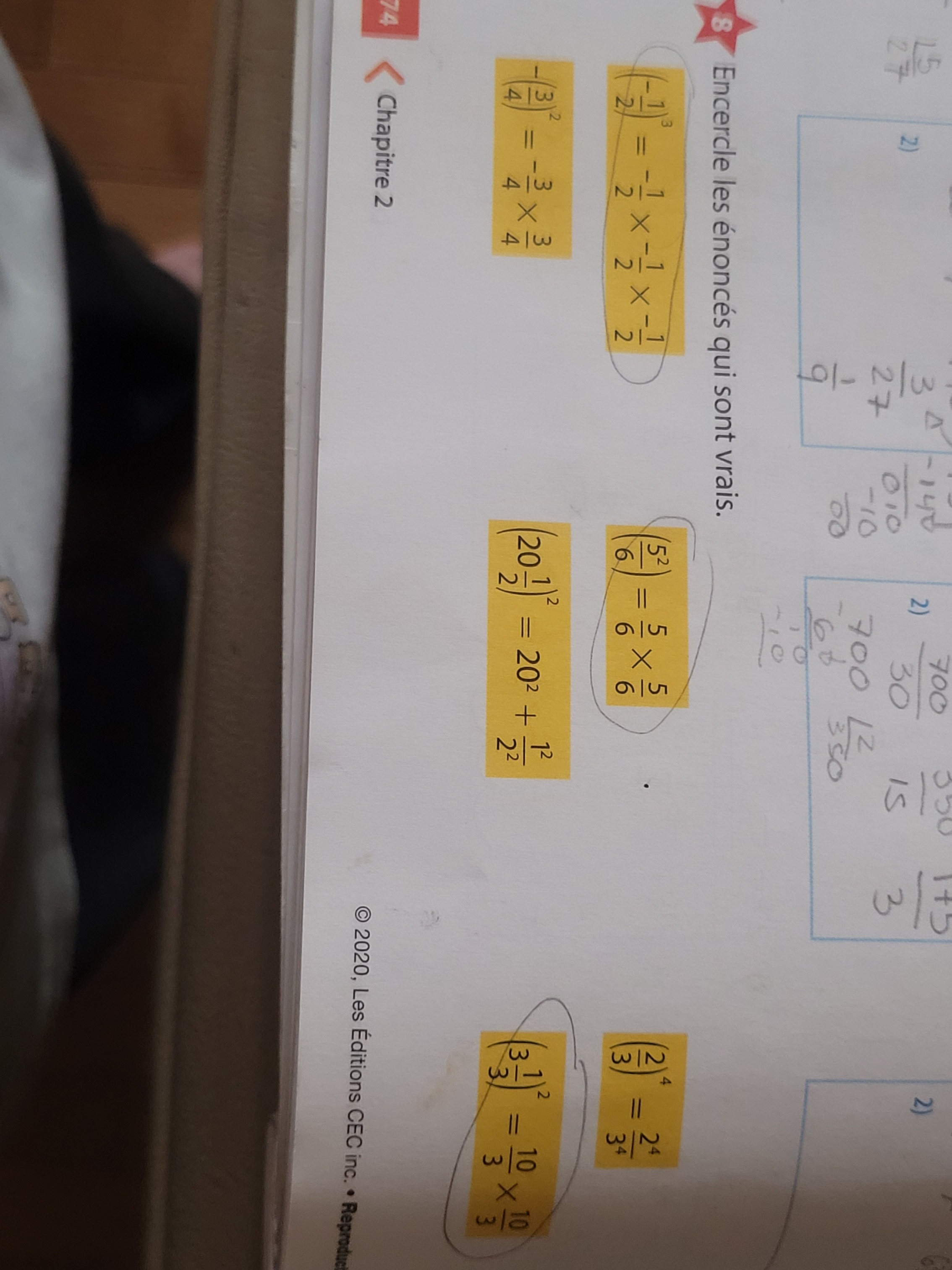 La question te demande d'utiliser les lois des exposants pour déduire quels énoncés sont vrais. Tu peux calculer chaque côté et comparer le résultat, ou simplement constater si les lois sont respectés.
