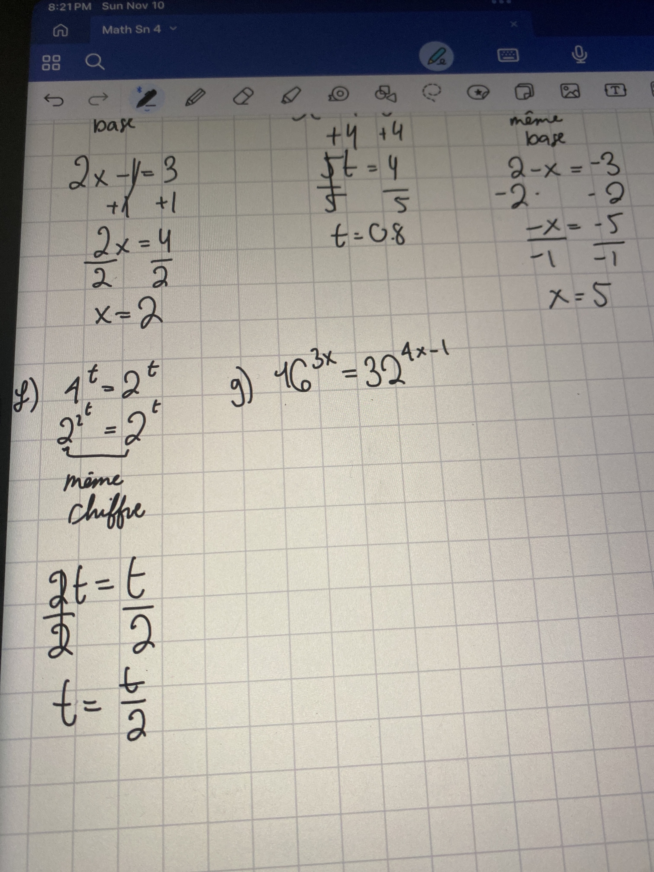 donc puisque les bases sont les mêmes les exposants sont égaux: