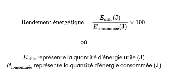 $$ \frac{Rendement \times E_{consommée} }{100} = E_{utile}$$