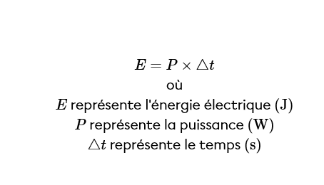 Pour commencer, on peut calculer l'énergie utilisée en appliquant la formule :