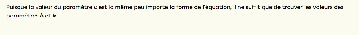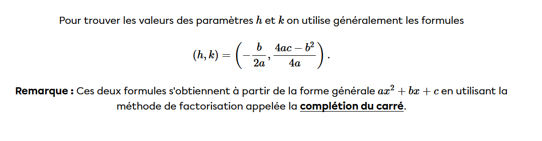 Maintenant, pour passer de la forme générale à la forme canonique, il faut trouver h et k.